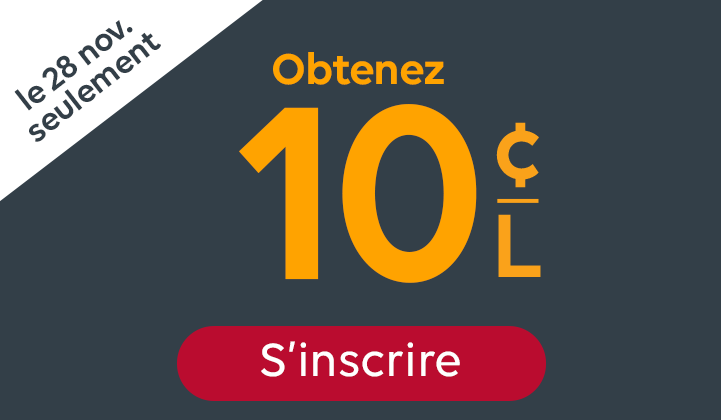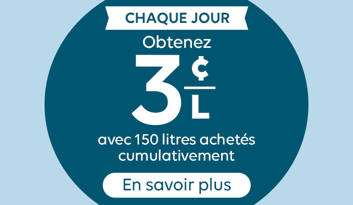 Ce mois-ci, chaque plein de 30 L+ chez Irving où vous glissez votre carte Récompenses Irving vous rapproche d’une récompense exclusive* : 3 visites mensuelles = récompense de 3 ¢/L 4 visites mensuelles = récompense de 6 ¢/L 5 visites mensuelles = récompense de 9 ¢/L